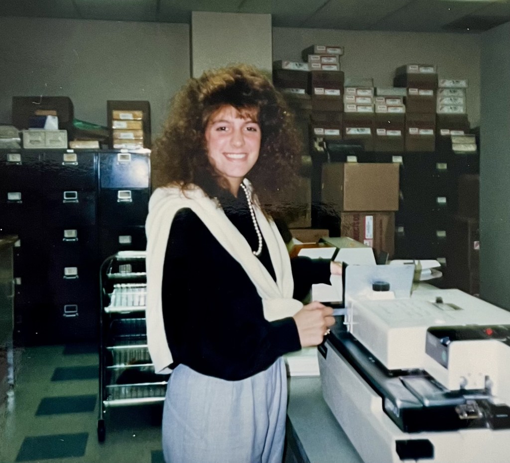 Me with my frizzy hair and button-up blouse and baggy slacks